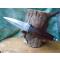 Couteau Dagger Scottish Sgian Dubh Damascus Blade Rosewood Handle Leather Sheath à lame fixe - Longueur totale 24.13cm - Longueur de lame 11.43cm - Lame en acier damas 256 couches - Garde et pommeau en damas - Manche en bois de rose - Etui cuir