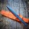La dague est fournie avec un étui Kydex parfaitement ajustée en orange vif équipé d'une passant de ceinture et de points d'attache, permettant de fixer des Tek-Loks, des clips MOLLE ou une corde Paracord pour attacher le fourreau à la cuisse ou au sac à dos.