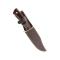 Le manche ergonomique en pakka wood assure une prise en main ferme et confortable. Ce matériau composite, issu de bois stratifié et de résine, combine l'esthétique du bois naturel à une excellente résistance à l'humidité et aux variations de température. La garde en acier inoxydable intégrée protège efficacement la main contre tout glissement vers la lame, renforçant la sécurité lors de l'utilisation.