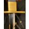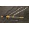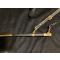 Fourreau à faces planes en laiton gainé de box-Calf beu foncé , béliére en box-calf bleu foncé , boucles en laiton. Dragonne à gland de soie naturelle bleu foncé.