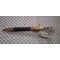 Dague allemande eickhorn Solingen. Longueur avec fourreau 42 cm, longueur de la lame 26 cm par 2,7 cm. Bon état, à signaler 3 petits enfoncement sur la bouterolle, voir photos. Dos de la lame gravée de feuilles de chêne