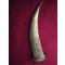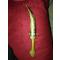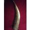 Lame légèrement courbée avec motifs gravés traditionnels (certaines gravures sont légèrement effacées avec le temps, ce qui témoigne de son authenticité et de son âge). Il devait sûrement y avoir quelques pierres incrusté dessus mais malheureusement, elles n'y sont plus.