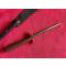 Dague avec son étui en ferraille, l'accroche ceinture semble récent, le pommeau est en bois et laiton avec des chiffres et des initiales, jolie lame sur deux pans et creusée sur le dessous, l'étui est en ferraille et laiton avec des manques de peinture, l'ensemble est bien homogène sans jeu et le pommeau sans fêlures ni cassures et aucune jeu au niveau de la garde, dague fine et légère, idéale pour les battues, longueur de la lame : 18 cm et longueur totale : 31 cm, pas de prix de réserve.