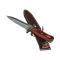 La dague est mal affutée et la pointe mal dessinée est à refaire. L'étui est non fonctionnel, il y a bien 3 systèmes de fermeture mais tous ont beaucoup de jeu, ce n'est absolument pas pratique pour la sortir. Ce n'est pas un produit conçu pour la traque mais plus pour le poste. C'est dommage, je l'ai gardé car je l'ai eu en solde pas trop cher sinon je l'aurai renvoyé. Il faut prévoir un ré affutage et dans mon cas reprendre la pointe.