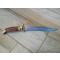 Dague chasse et son étui. Marque Léopard. Lame avec tranchant de 18cm. Le total de la dague dépliée est de 31,5cm.