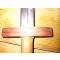 La garde est en bois avec une plaque de cuivre devant pour protéger des chocs ( photos 4 et 5 ), la lame est en acier XC70 avec une rainure centrale.