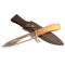 Dague de chasse avec lame en acier inoxydable MOVA Garde en acier inoxydable Manche en bois d'olivier Etui de ceinture en cuir brun Longueur de lame : 18 cm Longueur totale : 29,5 cm Poids : 234 g Fabriqué en Espagne