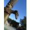 Superbe couteau de vénerie. Poignée en corne brune . Monture en bronze ciselé, pommeau en tête de lion, à deux quillons droits en tête de chien. Belle lame à dos signée de Coulaux Frères Klingenthal, décorée au tiers façon damas, et gravée de chasseur trophées de chasse, gibiers. Fourreau en cuir à deux garnitures en laiton en très bon état. Quillon en palmette. Longueur totale. 77 cm. petits manques sur les rayures de la poignée qui ne gène pas l'esthétique de la dague"voir photos". Vers 1830.