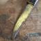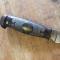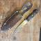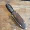 Dague de chasse ou de vénerie, poignée bakélite, lame en acier, en étui cuir, lame en acier de 12.5cm et d'une épaisseur de 4mm à la garde.