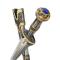 Reproduction d'une dague romaine en métal moulé et peint, avec de nombreux symboles : gladiateurs et lion (sur la lame), anges, ailes, ornements végétaux, etc.