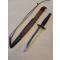 Petite déchirure du fourreau à l'entrée de la lame, pliure au niveau de la bouterolle.