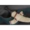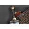 Fourreau âme en bois couvert de tissu et d'un élément en métal doré finement ajouré à décoration florale.
