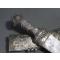 Poignée corne recouvert de laiton, métal et argent bas tire.