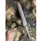 Dague de chasse montage artisanal lame damassée de 24,5 cm épaisseur 4,5mm 518gr  étui pvc plus cordura garde inox guillochée