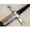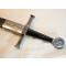 La dague a une garde massive et un pommeau à croix de malte ou de templier.