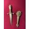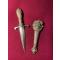 Poignée et fourreau ouvragés en laiton: fleur de Lys et décor festonné.