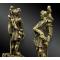 Fourreau en laiton, à décor en demi ronde-bosse, sur lequel figure sur chacun des côtés : un bouclier à figure bouche ouverte, flanqué de deux hallebardes, de feuilles de chêne et d’une corne. Au centre un chevalier sur sa monture cabrée ; puis un décor architecturé.
