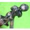Sur le modèle présenté ici on voit que l'appellation romantique trouve tout son sens par ce gentil homme au bouquet de fleurs. Mais le temps lui est compté. En effet, sous ses pieds, un sablier sur le haut du foureau lui rappel le temps qui s'écoule. Juste en dessous la chouette messagère de l'invisible l'invite vers d'autres mondes... Où un macaron diabolique paré de corne et de lèvres fumante semble l'attendre. Plus bas deux oroboros enlacés aux ailes déployées semblable à des phénix semble offrir l'espoir d'une renaissance... Mais baphomet veille à la pointe du foureau.