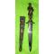 Quelques traces d'usure, et des coups marqués sur côté droit du foureau révèlent une utilisation éthérique.(à la droite du personnage).