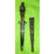 Longueur totale 27 cm. Longueur de la lame d'acier 13,3cm. Longueur de la poignée 10,3 cm. Longueur du foureau 16,7cm.