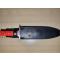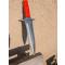 Les plaquettes de poignée robustes en Micarta orange fluo sont rivetées.La garde proéminente et les nervures transversales antidérapantes sur la poignée permettent de découper en toute sécurité. Perçage pratique pour dragonne. Livré avec étui de haute qualité et robuste avec double courroie de sécurité.