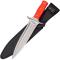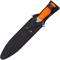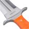 Les plaquettes de poignée robustes en Micarta orange fluo sont rivetées.La garde proéminente et les nervures transversales antidérapantes sur la poignée permettent de découper en toute sécurité. Perçage pratique pour dragonne. Livré avec étui de haute qualité et robuste avec double courroie de sécurité.