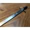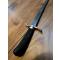 Manche en corne brune en cannelure, terminant par une bague en argent.