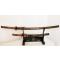 Dragon gravé d’un côté et signé par le forgeron de l’autre côté. Katana : Longueur totale 100 cm - Lame 72 cm - Poids Katana seul 960 gr - Poids Total 1190 gr Wakizashi : Longueur totale 66 cm - Lame 46 cm - Poids Wakizashi seul 650 gr - Poids Total 800 gr Kake double Horinouchi importé du Japon, fabrication artisanale de qualité en un noir mat : Hauteur 31,5 cm - Longueur 42 cm - Largeur 15,5 cm