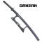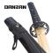 Danzan katana lame en bois avec gorge Tsuka-poignée : Bois dur, imitation peau de raie Tsuba-garde : Acier noir , forme ronde Habaki : Emblème Danzan en acier Saya-fourreau: Bois robuste recouvert de cuir ,tressage en cuir et hanse Poids katana et fourreau : 534grs Poids katana seul: 320grs Longueur avec fourreau : 104cm Longueur katana : 97,5cm Longueur lame : 70cm