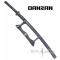 Danzan katana lame en bois avec gorge Tsuka-poignee : Bois dur, imitation peau de raie Tsuba-garde : Acier noir , forme ronde Habaki : Emblème Danzan en acier Saya-fourreau: Bois robuste recouvert de cuir ,tressage en cuir et hanse Poids katana et fourreau : 534grs Poids katana seul: 320grs Longueur avec fourreau : 104cm Longueur katana : 97,5cm Longueur lame : 70cm Accessoire inclus : -Housse de protection -Support Bois Danzan Concus pour les entrainements au maniement du sabre sans chocs.