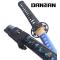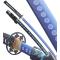 Danzan katana lame en bois peinte en bleu Tsuka-poignée : Bois dur, imitation peau de raie Tsuba-garde : Acier noir forme ronde Habaki : Emblème Danzan en acier Saya-fourreau : Bois robuste noir laqué avec des inscrustations couleur or et bleu Poids katana et fourreau : 595grs Poids katana seul : 325grs Longueur avec fourreau : 104cm Longueur katana : 98cm Longueur lame : 69,5cm