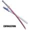 Danzan katana lame en bois decoré. Tsuka-poignée : Bois dur, imitation peau de raie Tsuba-garde: Acier, forme feuille Habaki : Emblème Danzan en acier Saya-fourreau : Bois robuste Poids katana et fourreau : 600grs Poids katana seul : 350grs Longueur katana dans son fourreau: 105cm Longueur katana seul : 99cm Longueur lame : 69cm