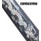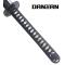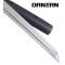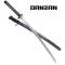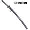 Danzan katana forgé à la main, construction Full-Tang Lame acier T10 tranchante Tsuka-poignée : En Bois tréssé de coton noir Saya-fourreau: Bois robuste laqué noir et décoré de nacre Poids katana avec fourreau : 1430grs Poids katana seul : 1095grs Longueur avec fourreau : 107,5cm Longueur katana : 102cm Longueur lame : 72cm
