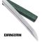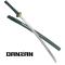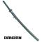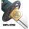 Danzan katana forgé à la main, Full-Tang Lame acier T10 tranchante Tsuka-poignée : En acier laiton vieilli Saya-fourreau: Bois robuste laqué noir et vert Poids katana avec fourreau : 1330grs Poids katana seul : 1050grs Longueur katana dans fourreau : 106cm Longueur katana : 102,5cm Longueur lame : 72 cm