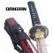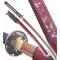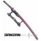 Danzan katana sakura lame en bois wenge avec gorge. Tsuka-poignee : Bois dur, imitation peau de raie et coton noir Tsuba-garde: Acier bronze, forme ronde Habaki : Emblème Danzan en acier Saya-fourreau : Bois robuste avec fleur de decoration Longueur avec fourreau : 103cm Longueur katana : 99cm Longueur lame : 71cm Poids katana et fourreau : 630grs Poids katana seul : 390grs Accessoire inclus : -Housse de protection -Support bois Danzan Concus pour les entrainements au maniement du sabre sans chocs.