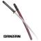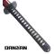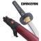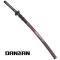 Danzan Katana forgé à la main, Full-Tang Lame acier T10 tranchante Tsuka - poignée : En bois avec vrai peau de raie tressé de coton Tsuba - garde : En acier noir Saya-fourreau: Bois robuste laqué bordeau et décoré de nacre Longueur avec fourreau : 107,5cm Longueur katana : 102cm Longueur lame : 72cm Poids katana avec fourreau : 1430grs Poids katana seul : 1095grs