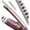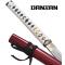 Danzan shirasaya forgé à la main, Full-Tang avec koyuza (couteau) Lame tranchante : Acier 1045 Tsuka-poignée : Bois dur, peau de raie véritable et corde en cotton beige Habaki : Emblème Danzan en acier Saya-fourreau : Bois laqué bordeau irisé et corde noire, un koyuza-couteau est dissimulé à l'interieur du saya. Poids katana et fourreau : 1173grs Poids katana seul : 905grs Longueur avec fourreau : 103cm Longueur katana : 98cm Longueur lame : 71cm Longueur koyuza : 19,5cm