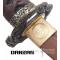Danzan Wakizashi dragon lame en bois wenge avec gorge. Tsuka-poignee : Bois dur, imitation peau de raie et coton noir Tsuba-garde: Acier bronze, forme ronde Habaki : Emblème Danzan en acier Saya-fourreau : Bois robuste avec un dragon grave Longueur avec fourreau : 79cm Longueur Wakizashi : 74cm Longueur lame : 51cm Poids katana et fourreau : 520grs Poids katana seul : 340grs Accessoire inclus : -Housse de protection -Support bois Danzan Concus pour les entrainements au maniement du sabre sans chocs.