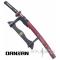 Danzan Wakizashi sakura lame en bois wenge avec gorge. Tsuka-poignee : Bois dur, imitation peau de raie et coton noir Tsuba-garde: Acier bronze, forme ronde Habaki : Emblème Danzan en acier Saya-fourreau : Bois robuste avec un dragon grave Longueur avec fourreau : 78cm Longueur Wakizashi : 74cm Longueur lame : 51cm Poids Wakizashi et fourreau : 520grs Poids Wakizashi seul : 330grs Accessoire inclus : -Housse de protection -Support bois Danzan Concus pour les entrainements au maniement du sabre sans chocs.