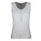 Débardeur blanc en coton, col tunisien à grande patte boutonnée : une pièce raffinée et confortable pour un style naturel et lumineux. Polyvalent et léger, il s'adapte à tous vos looks estivaux.