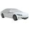 Demi-housse de voiture avec crochets argenté LCette demi-housse de voiture protège votre véhicule contre les rayons UV, la neige, la pluie, le gel, la poussière, les feuilles mortes, la pollution industrielle et les fientes d'oiseaux, ce qui la rend idéale pour une utilisation à l'intérieur et à l'extérieur. Protection pour toute saison : cette housse de voiture est fabriquée en polyester respirant avec un revêtement PU, ce qui garantit qu'elle est imperméable et qu'elle protège contre les UV pour une protection tout au long de l'année. Les coutures doubles renforcent sa solidité et sa durabilité.Revêtement argenté pour l'isolation thermique : la surface argentée de la housse de voiture reflète plus de lumière solaire et de rayons UV, ce qui permet à votre voiture de rester plus fraîche par temps chaud. Cela permet de protéger l'intérieur de votre voiture contre les dommages causés par la chaleur.Design coupe-vent : avec les bandes élastiques à crochets, la housse de voiture peut être solidement attachée à n'importe quel moyeu de roue et châssis, l'empêchant ainsi d'être emportée par le vent.Facile à ranger : cette housse de voiture est livrée avec un sac de rangement pratique, ce qui permet de la ranger facilement lorsqu'elle n'est pas utilisée. Bon à savoir :Avant d'acheter, veuillez prendre les mesures précises de votre voiture afin de vous assurer que vous choisissez la bonne taille.