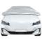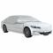 Demi-housse de voiture avec crochets argenté XL PEVACette demi-housse de voiture protège votre véhicule contre les rayons UV, les rayures, la neige, la pluie, le gel, la poussière, les feuilles mortes, la pollution industrielle et les fientes d'oiseaux, ce qui la rend idéale pour une utilisation à l'intérieur et à l'extérieur. Matériau multicouche : la housse de voiture est fabriquée à partir de trois couches : film aluminium, PEVA et coton doux, offrant une excellente résistance à l'eau, à la poussière, aux UV et aux rayures.Revêtement argenté pour l'isolation thermique : la surface argentée de la housse de voiture reflète plus de lumière solaire et de rayons UV, ce qui permet à votre voiture de rester plus fraîche par temps chaud. Cela permet de protéger l'intérieur de votre voiture contre les dommages causés par la chaleur.Design coupe-vent : avec les bandes élastiques à crochets, la housse de voiture peut être solidement attachée à n'importe quel moyeu de roue et châssis, l'empêchant ainsi d'être emportée par le vent.Facile à ranger : cette housse de voiture est livrée avec un sac de rangement pratique, ce qui permet de la ranger facilement lorsqu'elle n'est pas utilisée. Bon à savoir :Avant d'acheter, veuillez prendre les mesures précises de votre voiture afin de vous assurer que vous choisissez la bonne taille.