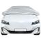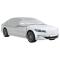 Demi-housse de voiture avec crochets argenté XLCette demi-housse de voiture protège votre véhicule contre les rayons UV, la neige, la pluie, le gel, la poussière, les feuilles mortes, la pollution industrielle et les fientes d'oiseaux, ce qui la rend idéale pour une utilisation à l'intérieur et à l'extérieur. Protection pour toute saison : cette housse de voiture est fabriquée en polyester respirant avec un revêtement PU, ce qui garantit qu'elle est imperméable et qu'elle protège contre les UV pour une protection tout au long de l'année. Les coutures doubles renforcent sa solidité et sa durabilité.Revêtement argenté pour l'isolation thermique : la surface argentée de la housse de voiture reflète plus de lumière solaire et de rayons UV, ce qui permet à votre voiture de rester plus fraîche par temps chaud. Cela permet de protéger l'intérieur de votre voiture contre les dommages causés par la chaleur.Design coupe-vent : avec les bandes élastiques à crochets, la housse de voiture peut être solidement attachée à n'importe quel moyeu de roue et châssis, l'empêchant ainsi d'être emportée par le vent.Facile à ranger : cette housse de voiture est livrée avec un sac de rangement pratique, ce qui permet de la ranger facilement lorsqu'elle n'est pas utilisée. Bon à savoir :Avant d'acheter, veuillez prendre les mesures précises de votre voiture afin de vous assurer que vous choisissez la bonne taille.