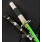 Magnifique reproduction du sabre en bois de Sanemi Shinazugawa tire du manga Demon Slayer. La lame decore est bois peint avec systeme led integre permettant de rendre votre lame lumineuse sur simple pression d'un bouton au niveau du manche. La garde est en ABS decore. Manche en ABS tresse de coton vert et blanc Longueur totale : 102cm Longueur de la lame : 69cm Poids epee et fourreau : 540grs Poids epee : 300grs Livre avec son fourreau en ABS decore. Il vous faut 3 piles AAA non fournis.