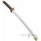 Magnifique replique de l'epee de Shinobu Kocho tire du manga Demon Slayer. Replique du katana pour enfant. La lame decoree est en bois peint. La garde est en ABS decoree. Manche tresse de coton vert. Longueur totale : 80cm Longueur de la lame : 50cm Poids epee et fourreau : 350grs Poids epee : 195grs Livre avec son fourreau en ABS blanc.