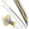 Magnifique replique du sabre de Zenitsu Agatsuma tiré du manga Kimetsu No Yaiba. La lame decorée est en acier stainless 440 inoxydable. La garde est décorée. Manche en bois tressé de coton blanc.