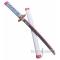 Magnifique replique de l'epee de Mitsuri Kanroji tire du manga Demon Slayer. Replique du mini katana en bois La lame decoree est en bois peint. La garde est en ABS decoree. Manche tresse de cotton. Longueur totale : 45cm Longueur de la lame : 27cm Poids epee et fourreau : 110grs Poids epee : 60grs Livre avec son Presentoir en ABS noir.