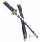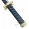 Magnifique replique de l'epee de Muichiro Tokito tire du manga Demon Slayer. Replique du mini katana en bois. La lame decoree est en bois peint. La garde est en ABS decoree. Manche tresse de coton noir. Longueur totale : 45cm Longueur de la lame : 27cm Poids epee et fourreau : 110grs Poids epee : 60grs Livre avec son Presentoir en ABS noir.