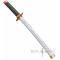 Magnifique replique de l'epee de Shinobu Kocho tire du manga Demon Slayer. Replique du mini katana en bois La lame decoree est en bois peint. La garde est en ABS decoree. Manche tresse de cotton. Longueur totale : 45cm Longueur de la lame : 27cm Poids epee et fourreau : 110grs Poids epee : 60grs Livre avec son Presentoir en ABS noir.