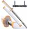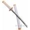 Magnifique replique de l'epee de Zenitsu Agastuma tire du manga Demon Slayer. Replique du mini katana en bois. La lame decoree est en bois peint. La garde est en ABS decoree. Manche tresse de coton blanc. Longueur totale : 45cm Longueur de la lame : 27cm Poids epee et fourreau : 110grs Poids epee : 60grs Livre avec son Presentoir en ABS noir.